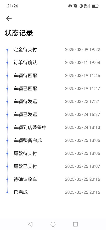 和大家分享提深蓝S07的经历。 一、购车历程 3月9日,我满怀期待地下了定金,开启这场购车之旅。11日订单确认,漫长等待后,19日车辆开始匹配。22日显示待发运,24日车辆终于发运并到店整备,速度之快让我对后续充满期待。25日整备完成,我立刻支付尾款,当天顺利完成收车,整个过程虽有等待,但也充满惊喜。 二、初见之喜 见到实车,月岩灰金属漆在阳光下格外耀眼,车身线条流畅,颜值超高。坐进车内,15.6英寸向日葵屏自动转向我,仪式感满满。热浪橙内饰时尚又耐脏。零重力座椅可后仰120°,配上双层隔音玻璃,休息时超安静。车机操作流畅,语音指令响应快,我把唤醒词设为“深蓝同学” ,互动感十足。 三、驾驶体验 上路后,纯电版200kW电机推背感强烈却不突兀,对新手很友好。华为乾坤智驾是本车最大的亮点,也是最有性价比的地方,能提前预判,妥妥一个十年老司机。实测能耗17.3kWh/100km,比官标低,很惊喜。2.9米轴距带来超大空间,家人乘坐很舒适,周末出游都夸选得好。 选择深蓝S07,是看中它油电同价的诚意和长安军工品质。提车有等待,但如今有它相伴,未来出行充满期待。