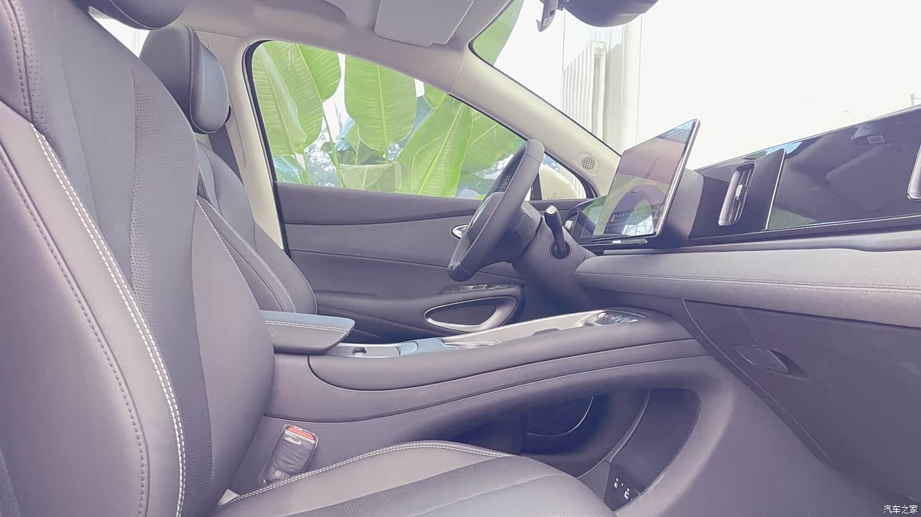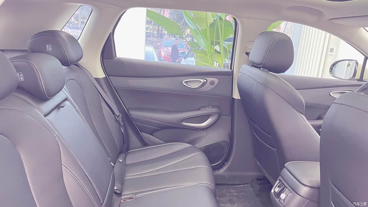 空间特别大,这是我当时坐进车里边所带来的第一种感觉,开之前我就先坐在后排座椅上感受了一下,纯平的地板没有明显的隆起,对个高的还挺友好的,据我观测,车内的几个扶手箱储物能力也不差,放生活用品应该挺有实力的,同时兼具前备箱和后备箱,两者加在一块容积特别大。