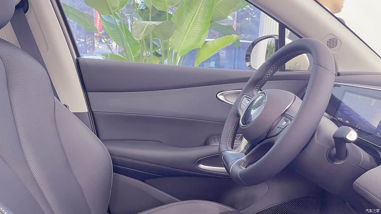 预约试驾的那天是阴天,车里边有一点冷,打开了这个空调,温度传感的非常不错,而且有热泵空调,温度提升速度会更快,内嵌在里面的8.8英寸液晶仪表盘和悬浮在外边的12.8英寸中控前后也超级有呼应感,驾驶座位类似于环抱式的座舱一样,坐在上面操控这些东西的时候很有成就感,语音识别可以四区域唤醒识别,不再局限于双区域,更加先进,多功能方向盘也非常给力,上面有丰富的按钮,提高了驾驭感。