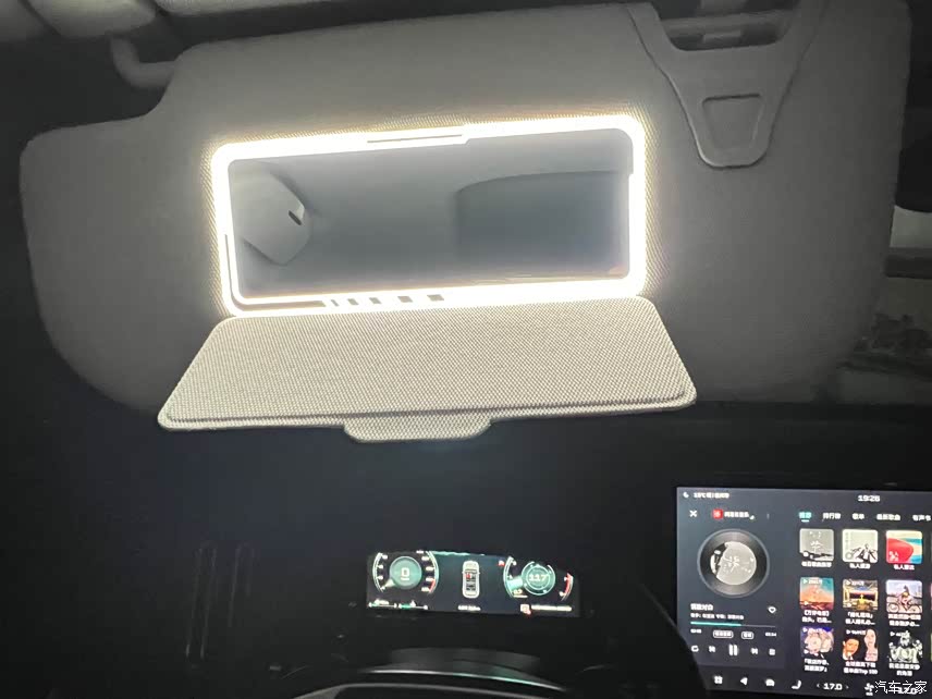 仿皮质的座椅非常柔软,包括门的两侧都是软包的很有质感。休闲的新宾灯+车内的氛围灯让夜晚充满了乐趣,有了一排实体按键不在需要去用手在车机里找空调开关了以及遮阳板的化妆镜也是加了灯光的