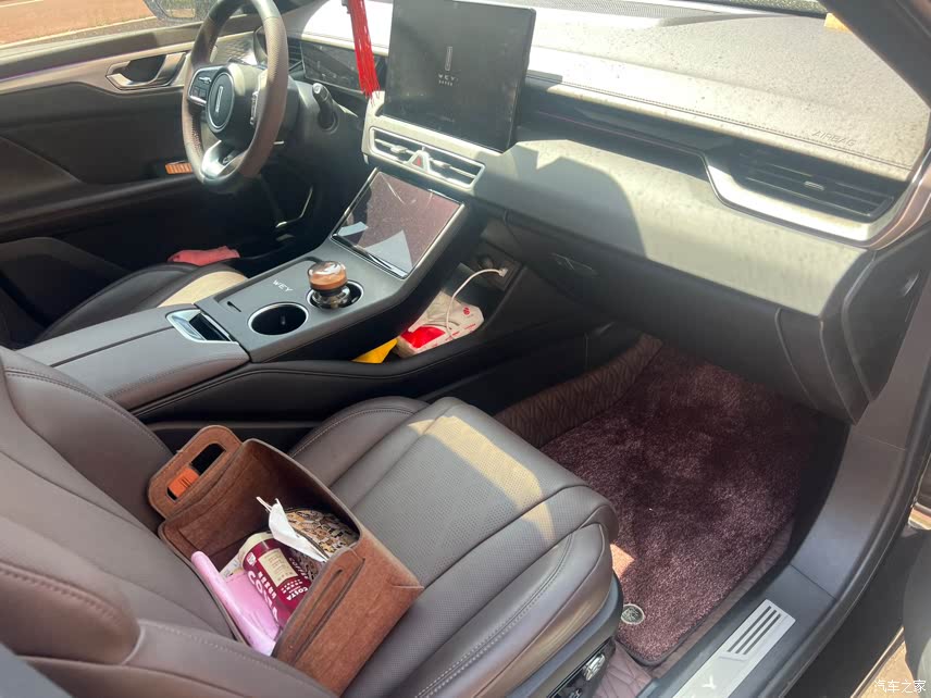 内饰做工比较精细,是我喜欢的风格,不太喜欢现在新能源千篇一律的大连屏,弄俩大pad杵在中控上,刚出来还挺新鲜,都这么弄就有点审美疲劳了;定摩卡之前还看看理想L6和L7,驾驶位前边中控鼓着一块大塑料中控台感觉很别扭,反而摩卡这种挺有设计感的,皮革金属搭配质感不错。