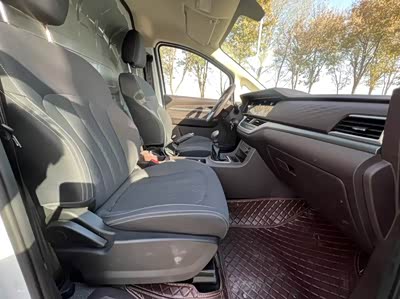内饰就是一个普普通通的造型,也是相对比面包车高级了一点,因为他有一个大连屏,反正中控台的造型就类似私家车那种造型,就是材质方面比较廉价一点,几乎都是塑料的材质。