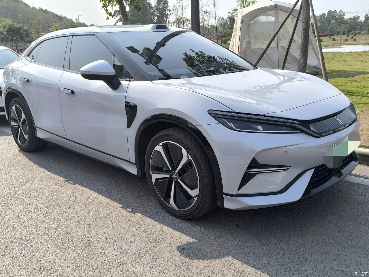 宋l的整体造型耐看,肌肉线条明显。LED大灯,晚上点亮后辨识度很高,车身线条流畅,轮毂运动感十足。配合上车漆的颜色在日光下超级好看,这一次出去露营还被人问了车和价钱。