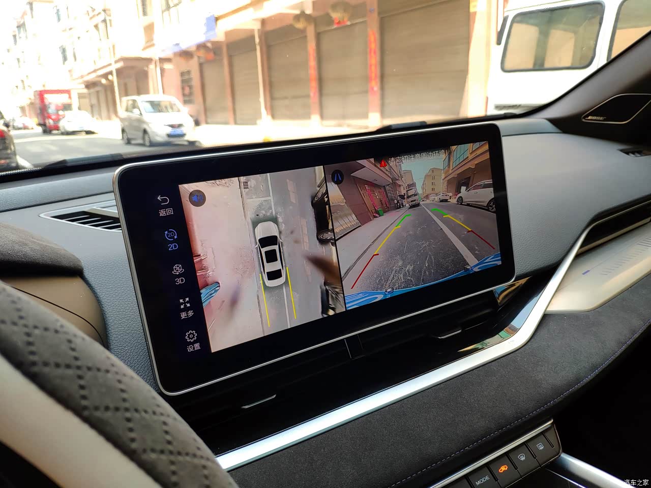 车机屏幕不算很大,但是清晰度和流畅度是可以的,触屏和看着的时候感受挺好。里面这个全景功能用的最多,很实用。