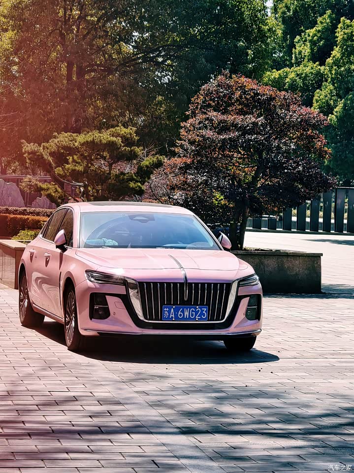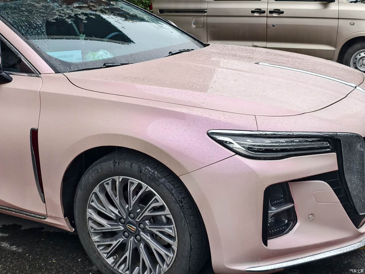 红旗23款H5的外观着实令人眼前一亮,整体造型大气磅礴,尽显霸气风范。它的前脸设计极具辨识度,标志性的直瀑式进气格栅搭配犀利的大灯组,犹如一头蓄势待发的猛兽,气场十足。车身线条流畅且富有张力,从车头延伸至车尾,勾勒出优雅而动感的轮廓,彰显出一种不怒自威的气质。 作为女车主,我大胆为爱车贴上了胭脂粉改色膜。原本霸气十足的外观,在这抹温柔粉色的点缀下,瞬间多了一份柔和与俏皮。开在路上,它既保留了红旗H5与生俱来的霸气,又增添了几分女性的柔美韵味,仿佛是一位刚柔并济的优雅骑士。每次驾驶着它出行,都感觉心情格外愉悦,这独特的配色也让我收获了不少路人的目光与赞叹。