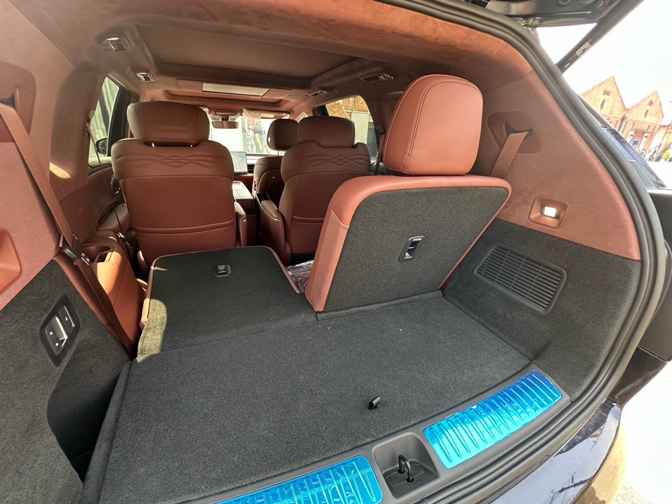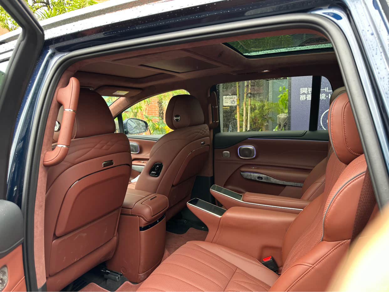 听张帆副院长说,这款SUV的设计融合了MPV的空间。车身三围长度5126mm,宽1990mm,高1750mm,二排零重力座椅可以左右平移,两个座椅都可以调整至NASA标准的127.5°黄金角度。第三排两个座位也很宽敞,放倒后车尾箱容量甚至可达到930L,能装一家四口出行一个月的行李。