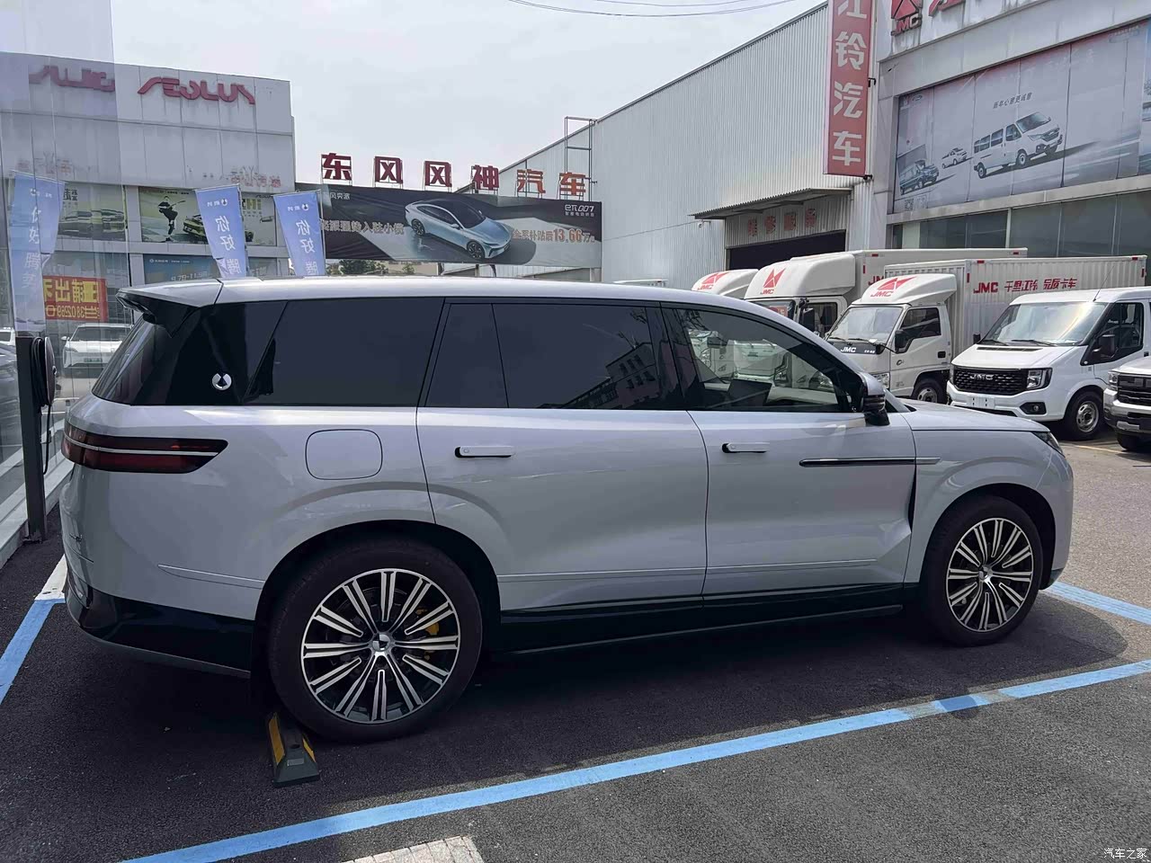 5米2的车身往那儿一杵,气场直接拉满。前脸那贯穿式大灯配上22寸大轮毂,活脱脱就是“西装暴徒”既视感。