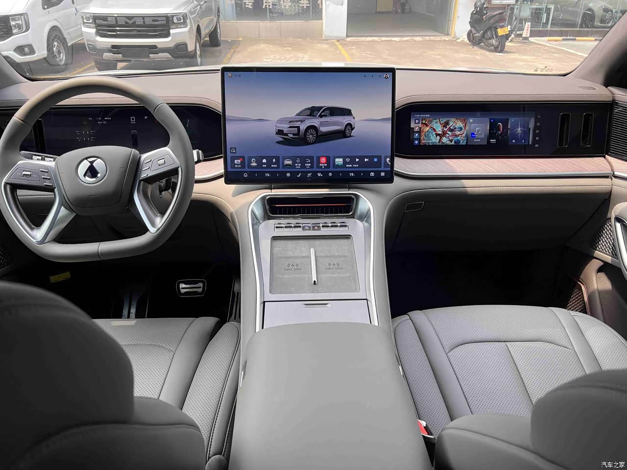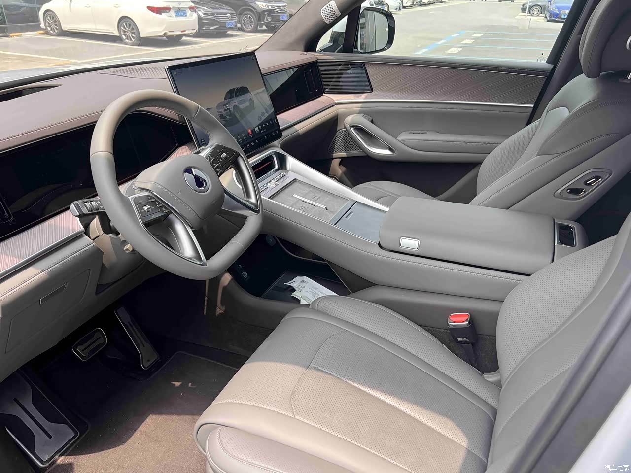 坐进车里更震撼——17.3寸中控屏、副驾驶娱乐屏、吸顶屏...数了数好多块屏幕!那个“零重力座椅”一躺,媳妇儿直接说:“以后接客户路上都能开会了。”