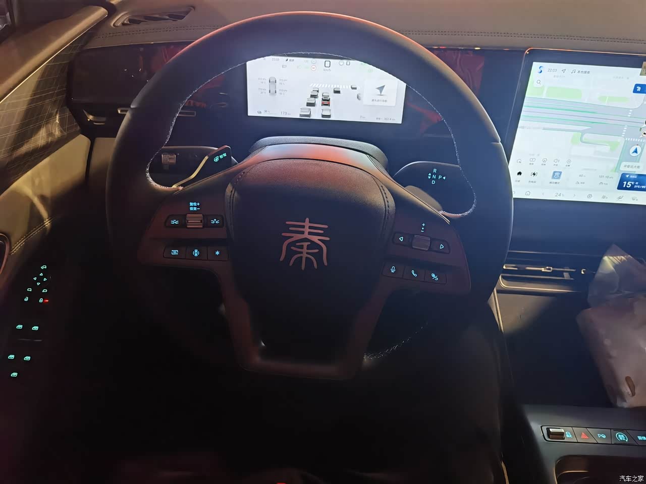 暗光环境中,所有标识都随大灯一起点亮,比之前的车彻底.....高级......