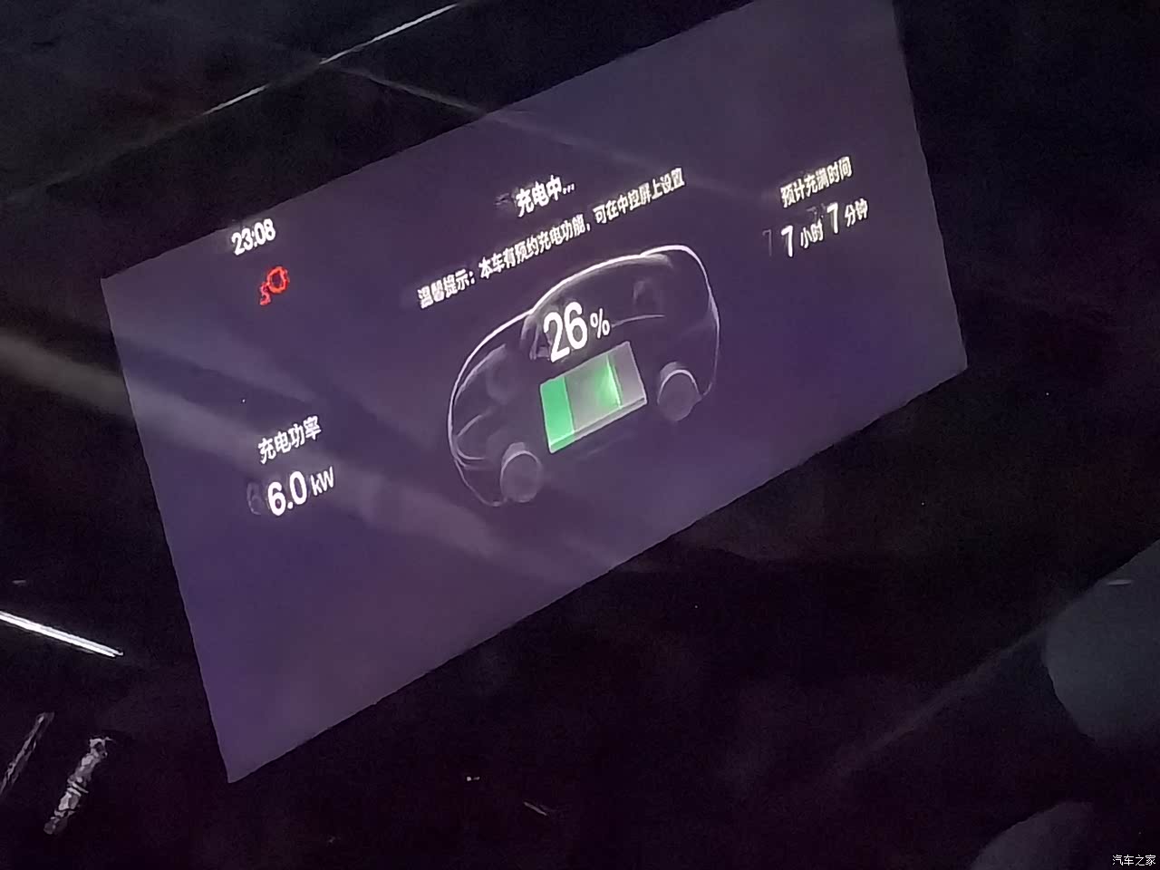 关闭车门隔着车窗玻璃拍摄的表显充电功率....打开车门、坐在车上,表显功率只剩下4.8kW了。