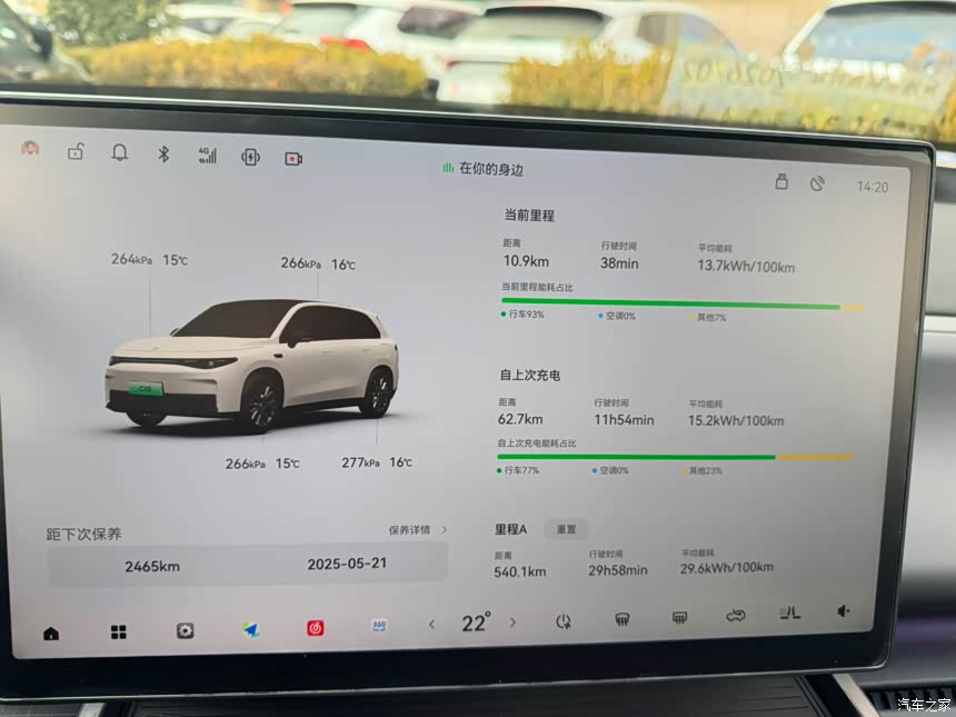 最满意的当属于是空间了,超级大的得房率,后排放倒了可以当大床,前排摘掉头枕也可以180°放平,平时午休啥的,或者充电时候休息休息简直舒坦!69.9°的电池,续航也比较扎实,动态显示还是很准确的。