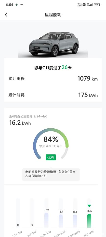 零跑是我的第二张车,第一张车是大学刚毕业一年的时候买的,油车,[呲牙]关键那时候真没钱,也没找家里要。选车其实也经历了很多,开始看的是极狐at5,因为有娃想着零甲醛座舱,但是我考察后发现极狐的售后点真是太少了,后面就考虑看比亚迪,开始想着买个ev汉或者宋plusdmi,后面思考很久,决定还是买纯电,毕竟多个香炉多个鬼👻,跑店里去定汉,路过了零跑,因为22年时候就在商超看到过零跑的展车,当时看完觉得零跑这车真是性价比之王,但是当时没有换车打算,记得那时候580尊享好像做下来不低价,可能当时这个车在我们小家三口心里种下了一颗种子,我们就顺便试驾了一下,结果我家女儿果断抛弃汉了,我家老婆174身高她也觉得汉空间没有c11够用,没办法啊,书记发话了,₍₍Ϡ(੭•̀ω•́)੭✧⃛第二天就跑去下定了。 所以最满意的还是空间和外观,符合年轻用户的审美,外观线条很柔和,特别是20寸轮毂,可是太喜欢了。内饰选的是雾紫加岩灰,我觉得很有质感,很喜欢内饰的三联屏,这个价位我能感受到零跑的用心❤️,车机有很多功能,包括分享码,能直接套用零动空间,目前还没有时间去露营,后排反正把天幕帐篷啥的一堆摆好了,静待五一小长假😃。 再谈下电耗,今天下班沉下心跑到楼下6.2公里,全程没有地板油,平稳起步,轻松模式电耗在10.2kw,平时我的电耗平均在14-16之间,也是起步急加速那种,新体验😂电车起步是真的爽歪歪。 然后就是底盘,当时排除汉的原因不是因为底盘调教,而且因为我觉得零跑用料对的起这个价格,全铝合金的双叉臂,我还是选择量大管饱😂晃点就晃点吧。