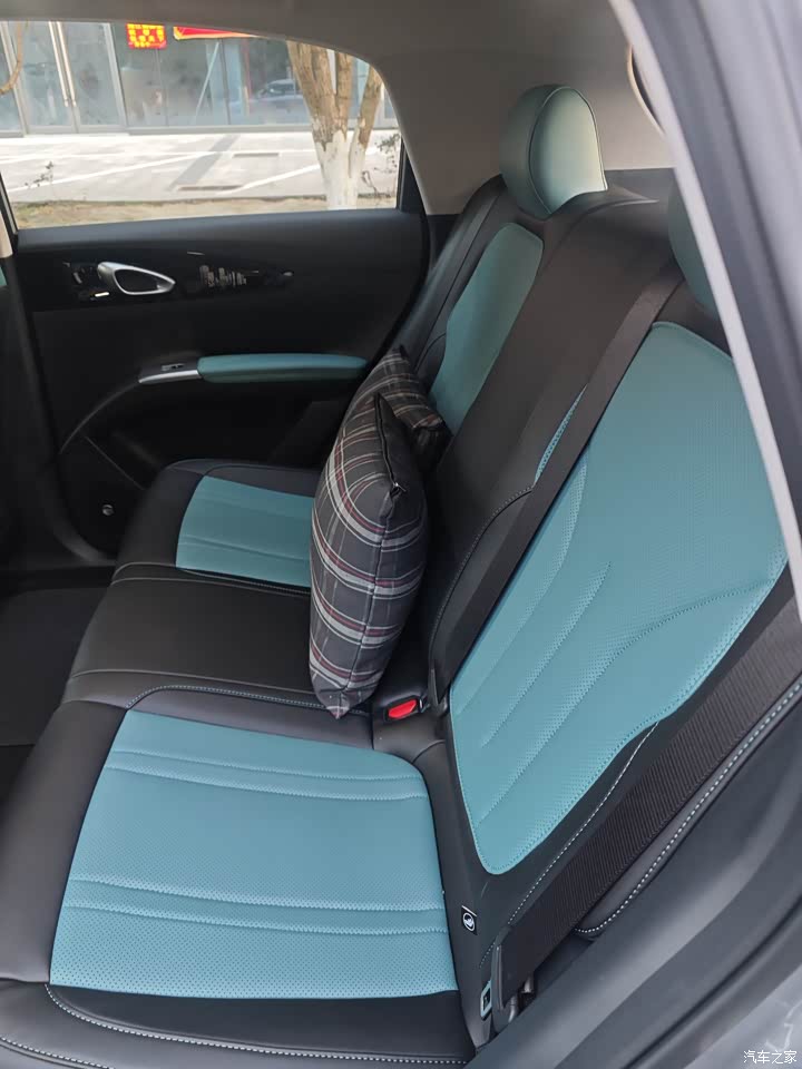 车内空间其实还不错,别看车长才4米1,坐进去比我老朗逸4.4米的还宽敞,腿部头部都有不少空挡。后备箱小了点,a0级别中么算还行吧,因为是后电机,前面有个挺大前备箱,放了打气包(老油车留下来的)和两个灭火器。