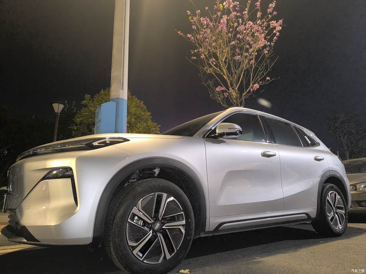 外观没得说,无论正面还是侧面,都非常好看,也不会太过于圆润,也有点带刚毅的味道!家里人都非常喜欢,而且轮毂我也觉得好看,甚至比顶配的好看😂