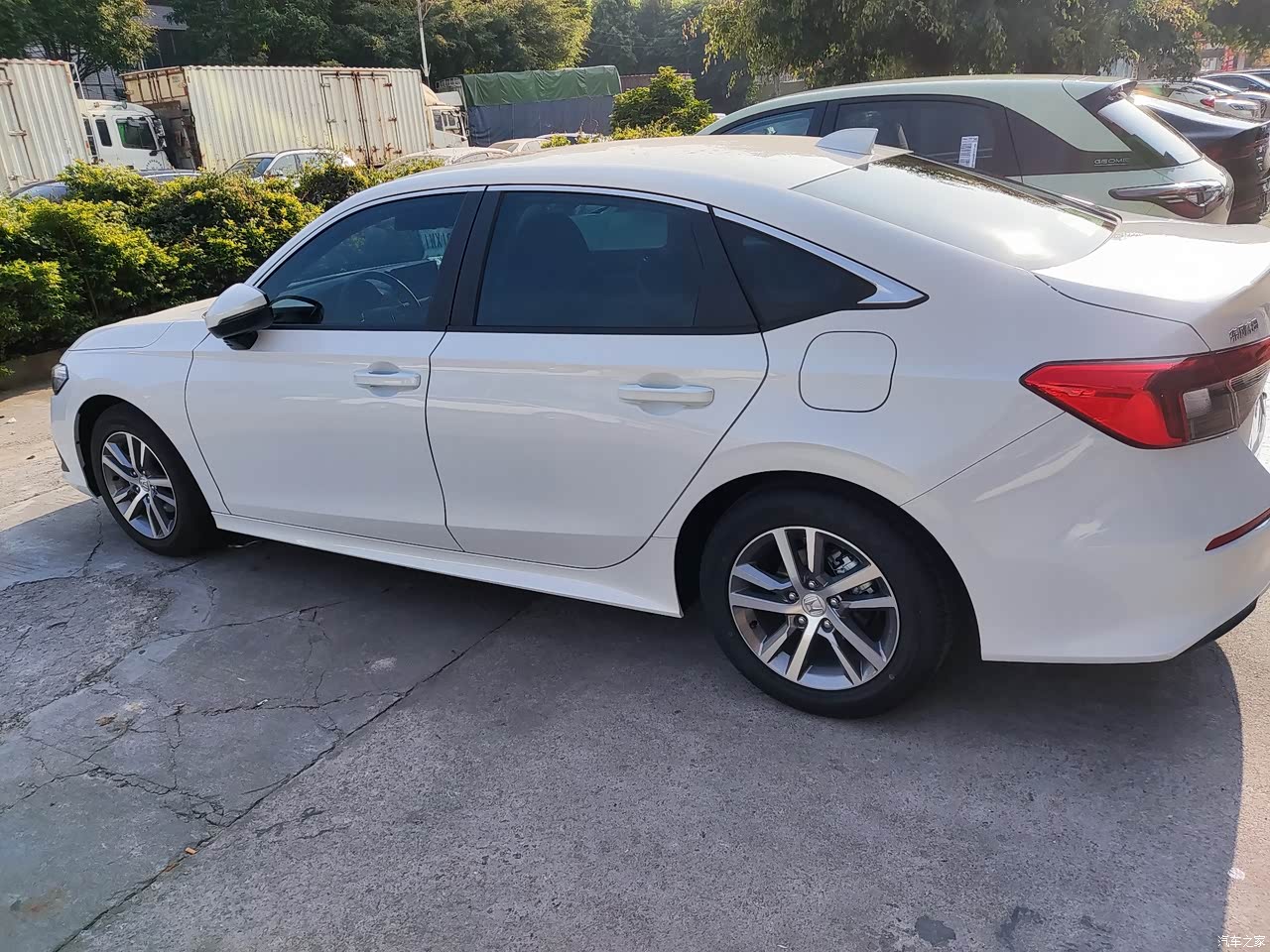 外观造型是比较年轻时尚运动的。白色刚洗完车在阳光的照射下很亮眼。溜背造型压缩了后排的头部空间