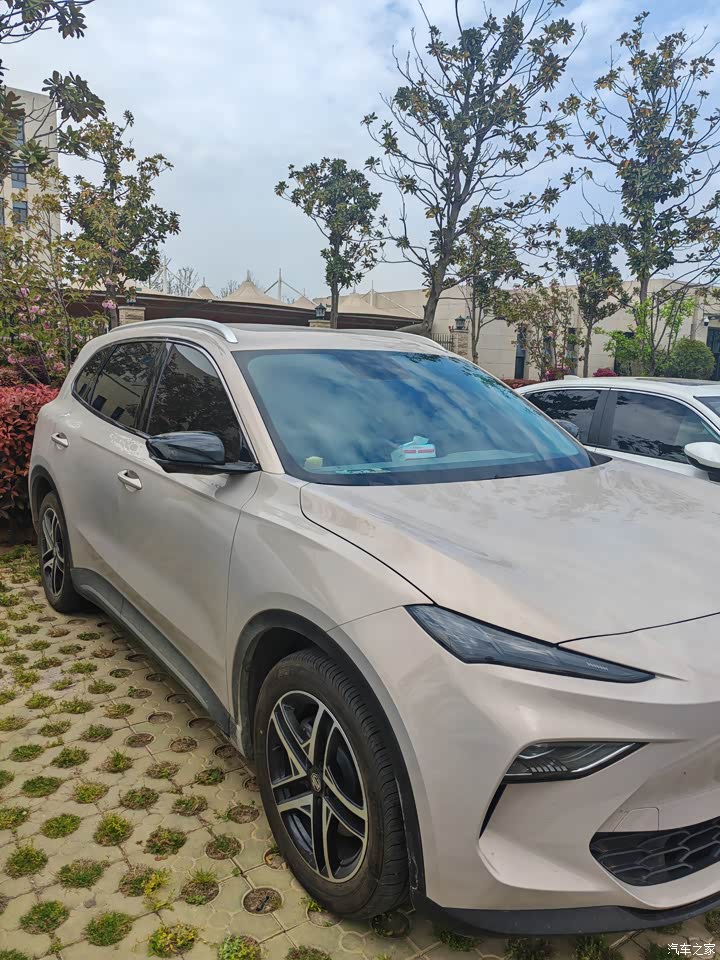 外观见仁见智吧,不属于那种一眼惊艳的,但带出去也不丑。尺寸和比亚迪元plus相当,开着放在一起对比,有一种清新的感觉。
