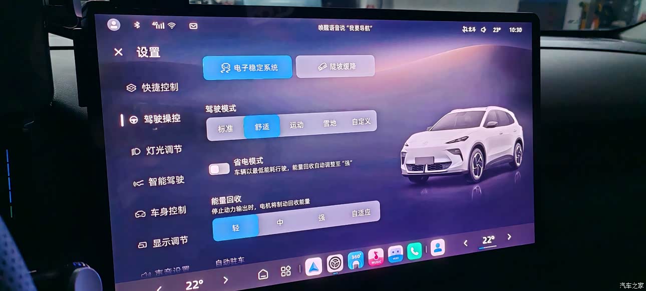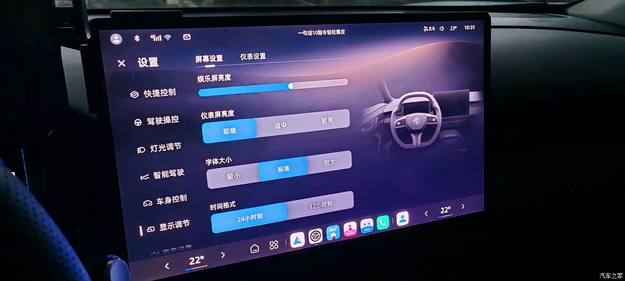 屏幕分辨率够用,很清晰,车机界面用起来也十分方便,简洁清楚。界面显示的信息量足够,方向盘快捷键也带来了不少方便,比如360,定速巡航,音量调节,歌曲调节。