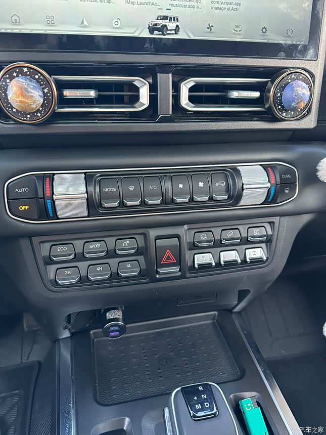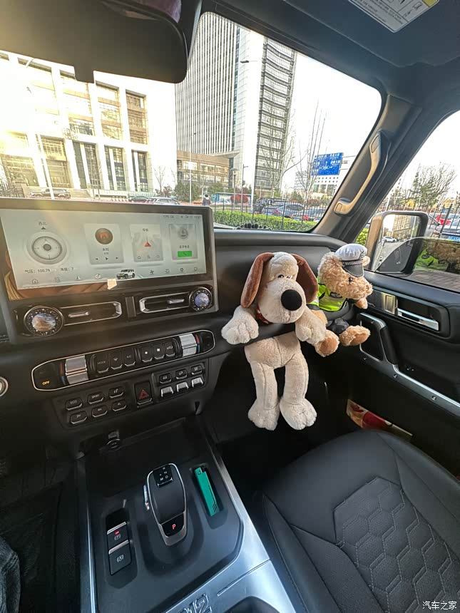 内饰也算中规中矩吧 内饰中控的这些机械按键我认为是不错的 特别是这种越野车在我们越野的时候颠簸情况下这种按键还是能够让我们快速进行操作的 越野车内饰我感觉不用过于较真儿 内饰设计是可以的用料也可以手能摸到得地方基本都是软质包覆这点挺不错 但是这个中控屏希望厂家能用个好点的屏幕屏幕分辨率不如当下主流车机的 流畅度也算还行但是有时候会出现卡顿问题 既然屏幕给都给了不要求最好 给个中偏上的也行毕竟这么大尺寸的屏也没多少成本