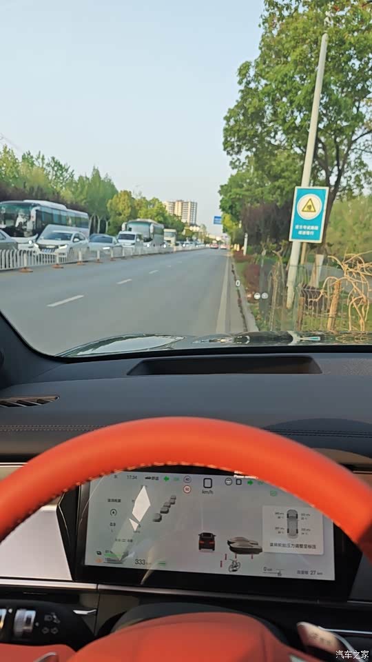 我感觉挺好用的,也没用两次,才提车。以前也没有开过自家的车,实话讲有点怂,不完全放心让他开,特别是排队启动的时候,他一转弯我心里突突的。抬头显的高低,亮暗都可调,但是白天看这个有时候觉得有点妨碍我,适应适应应该会好吧!后备箱好像没有脚踢感应,我试了好多次都没开,不知道确实是没有还是我没打开功能。冰箱是划一下自己弹出来,但是得手动推回去。其实车子刚上市好多东西感觉销售也不是特别熟,都是一边摸索一边看。 加一些智能化的内容吧。 1.侧方停车的时候摄像头会显示你跟侧面的距离,精准到厘米,这个对于把握不好距离的车友很有用。 2.车内有个摄像头,打开相关功能后,可以自动识别人脸切换账号,我怀疑是怕没学习过智驾的人上车用智驾出事。所以人脸识别一下。然后它还会在你一边开车一边用手机的时候提示你要集中注意力。会在锁车后识别车内是不是还留有宠物或孩子。 3.说说智驾, 3.1先在APP上学习一下,然后车上登陆自己的账号就可以去设置里面打开城市领航。然后导航一个地址,导航上会提示可以使用城市领航了,你按一下智驾的按钮就启动了,行驶中按也可以。 3.2用了两天下来,这个车的智驾给我的感受就是太守规矩,他会在汇入路口,涵洞,右前方有电动车等各种考驾照的时候要求减速刹车的时候刹一下车。虽然你这个道上面一路平坦。 3.3导航没有车道级,我反正没有找到打开车道级导航的地方,提这个是因为智驾会有点轴,上面也提到了它太规矩,所以在左边是直行加左转,右边是直行的时候它会要去右边。然后右边停了一排车,左边畅通无阻,它就会靠右停着开始分析怎么不走,轴在这里一会儿,我就干涉它了。大马路上等不了,然后我想的是如果有车道级的导航它是不是就不会这样。可能得让他多学习学习。最后一张图就是它轴在这里。 3.4刚开始用智驾的时候,车子提取会比较快,红绿灯减速的时机也有点晚,我的习惯是看到红绿灯很远就松油门,让车子划过去,这样坐的人比较舒服。或者这么说吧,他提速和减速都不太线性,有点像股票,不过多跑了几次后有明显的改善,这个可能还得让它自己多学习学习。不过如果喜欢到了红绿灯才减速的人,应该丝毫没有问题了。 3.5道路识别都很清楚。除了它自己变道,你想让他变道的时候也可以拨一下转向,它就会变过去。红绿灯的起步是严格等灯完才开始动。