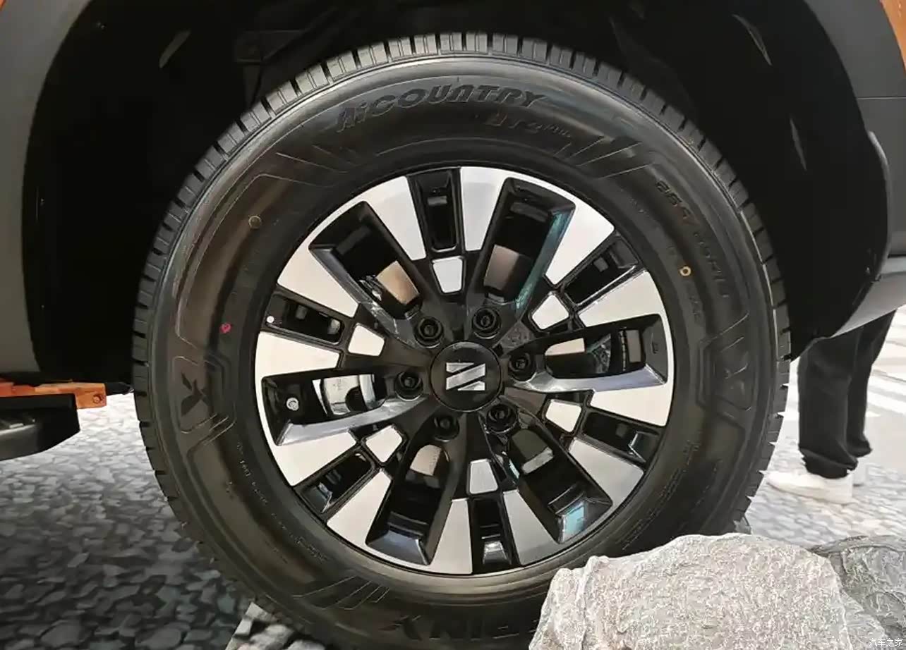外观特别霸气,前脸方方正正的,看着就很 man。轮毂很大,轮胎纹路很深,看着就适合去野。钣金我也用手摁了下,比较硬,车漆也蛮好看的。