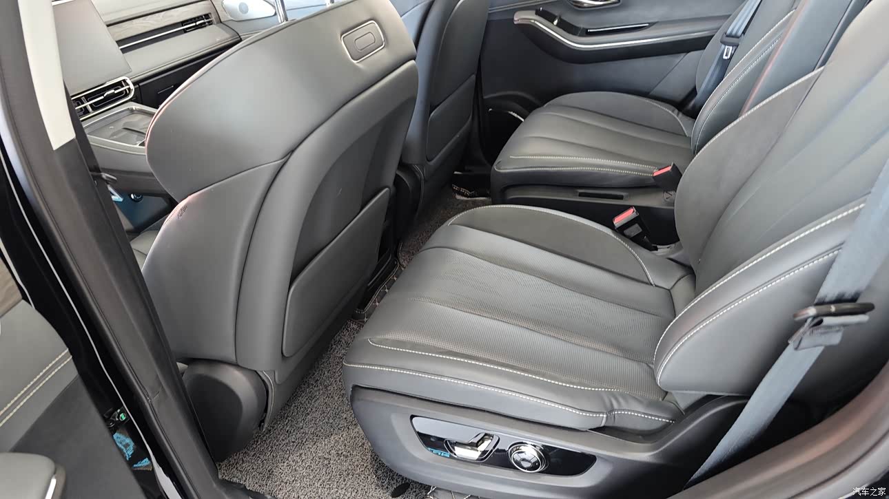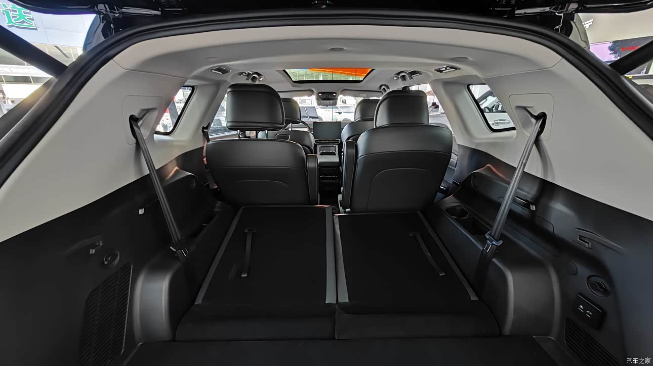大轴距确保了空间很好,乘坐感受也是不错的。第三排座椅可以分开自由的放倒,功能性很强。第三排的头部空间也不错。第二排座椅空间大,而且可以实现右侧座椅零重力体验,扩展空间性能很强。 车内储物空间也是很丰富的。不仅门板有储物,中央扶手有储物箱,杯架,无线充电,中控台下方还有一个很大的掏空区域,可以放置物品。第三排座椅放倒后,可以获得一个很大的储物空间。在空间表现上捷途山海l9可以说发挥到了极致。值得点赞。