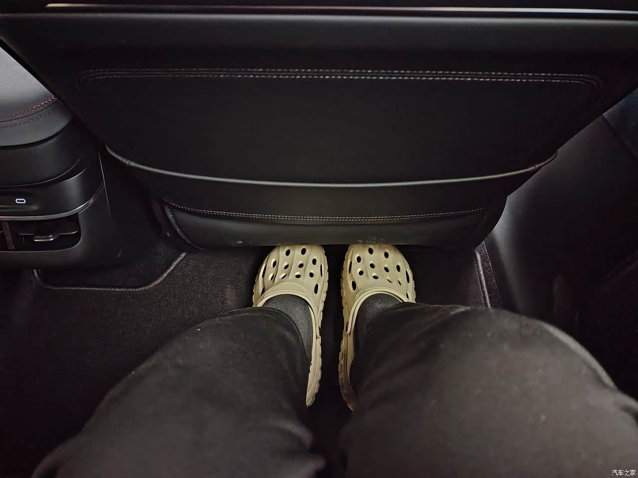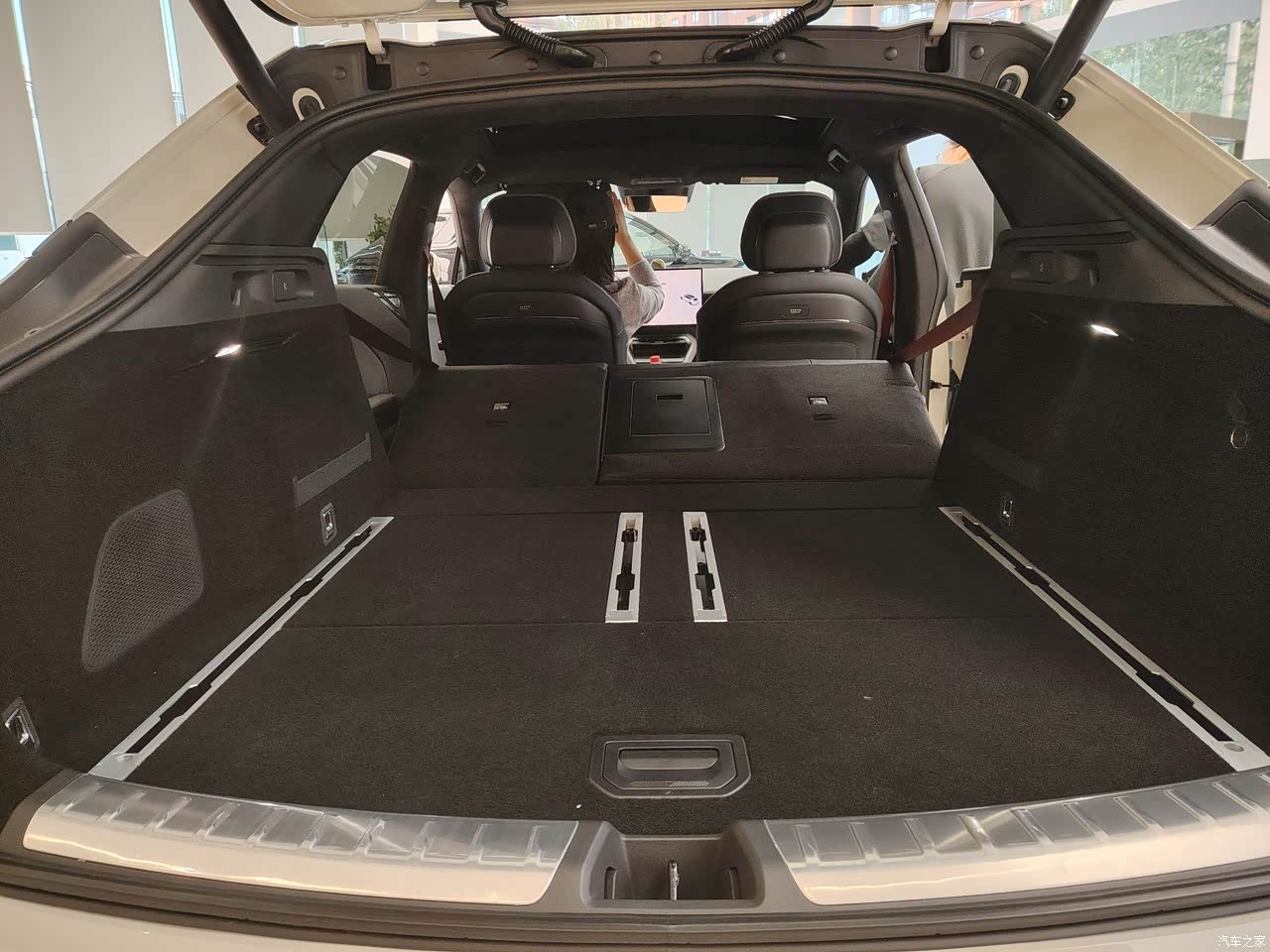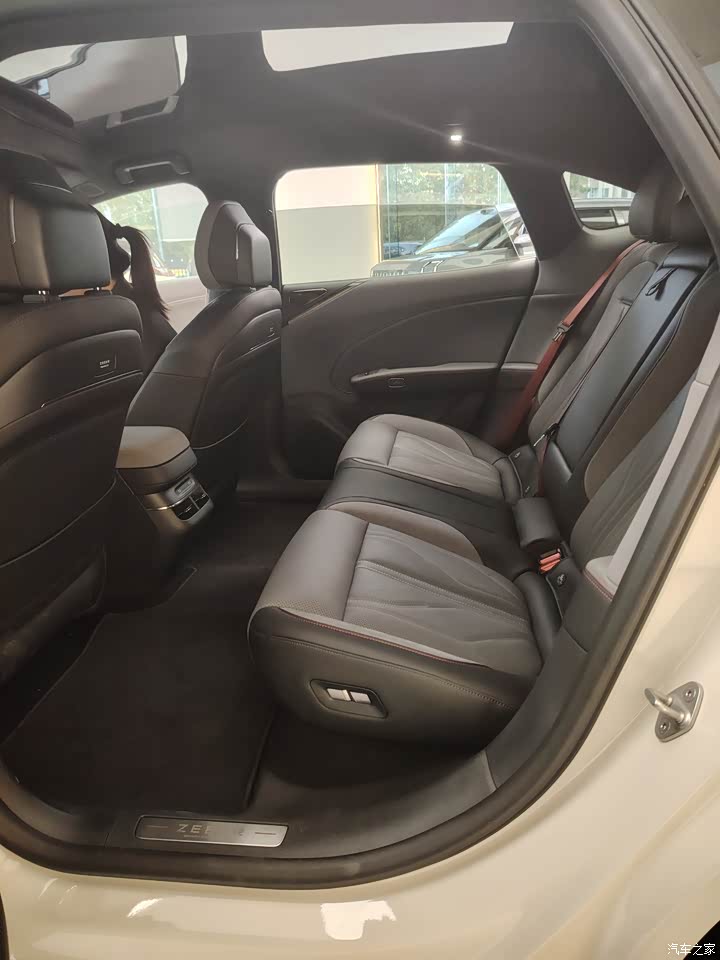 整车长度是4米86,而轴距达到了2.92米,这样整车的内部空间就大,尤其是后排空间很宽敞,我身高1米86,我太太坐驾驶位后,我在后排,离前排还有三拳以上的腿部空间,我轻松跷二郎腿。而且后备箱本身就大,后排座椅还可以放倒,这样整车的储物空间就相当大了,极氪有着小细节我觉得做的很好,后备箱的右侧有点烟器插口和电源插口,很方便就能外放电,真不错的设计,这点必须点赞!