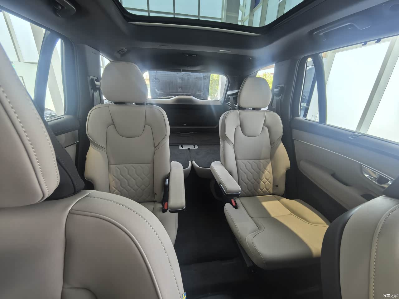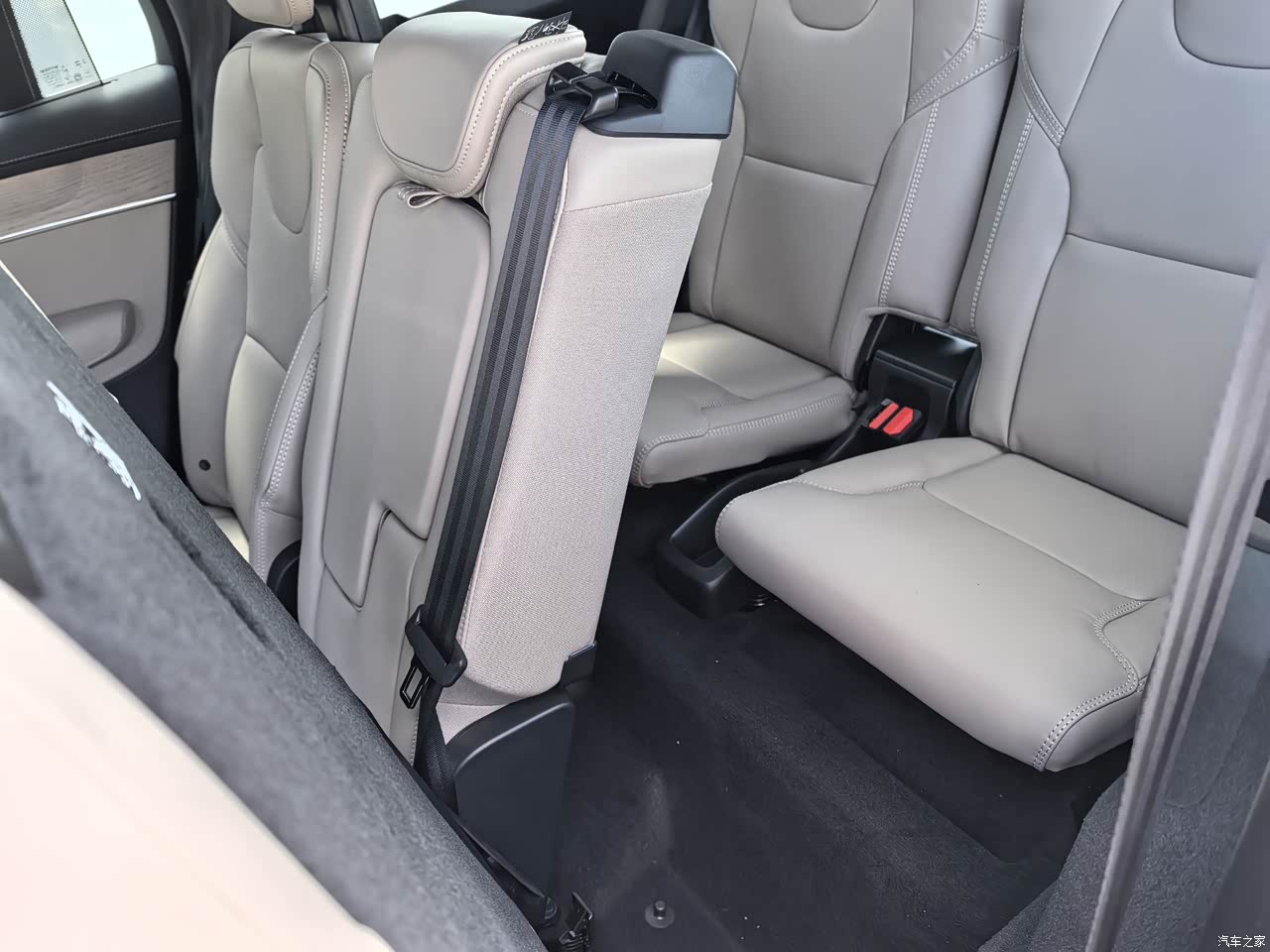 最不满意的就是t8版本只提供了7座没有6座版本。 大家都知道以前xc90是没有6座的,这次我到店里面正好有一台B6致远就是6座的。我体验了一下6座后排两个座位真的是挺好坐的,只要你不要超过1米8,肯定不会特别难受。 但是7座的布局别说后排有多大空间,就你想挤进去都好困难。而6座的布置中间有19厘米的宽度,进出第3排真的好方便。