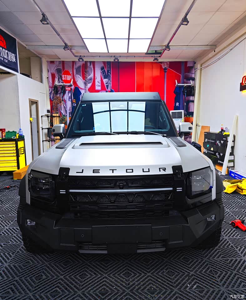 它是采用熏黑式的前脸进气格栅和字母标识,营造出强烈的越野感,而凸起的发动机舱盖和锐利的大灯组则增强了其霸气的视觉冲击力。