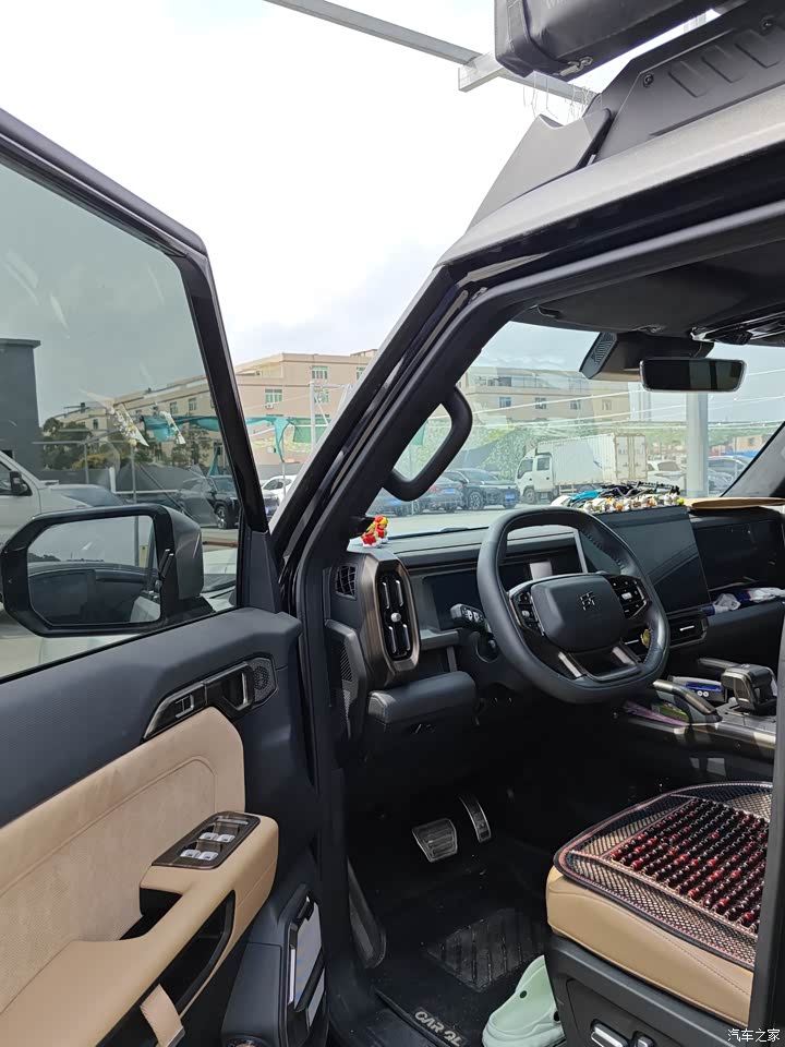 1、内饰保留了普通版的横平竖直布局,但是实体按键偏少,行车中操作空调需要分心,最想吐槽的就是下雨天,后视镜加热功能按键在中控屏的最右下角,真的不方便操作。 2、没有后视镜记忆及下翻功能,每次开车需要调整后视镜后再行驶,无法记忆,不够便利,后跟车友研究,可以通过调完后视镜之后,登陆账号,把脸部识别关掉,然后再把座椅后视镜记忆和个性化设置关掉,最后重启车子,就解决了后视镜记忆问题。 3、外观的“太空朋克风”确实吸睛,但有些设计会影响实用性:比如固定式侧踏板离地间隙较高,个子矮的后排乘客上下车有点费劲;车顶行李架虽然能扩展载物空间,但高速风噪明显增加。