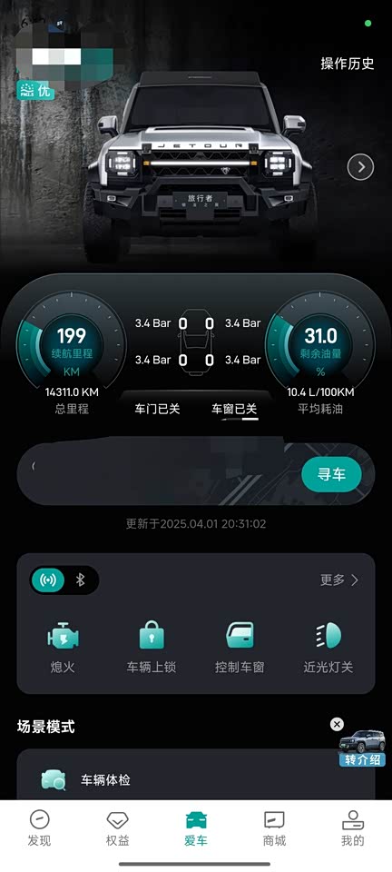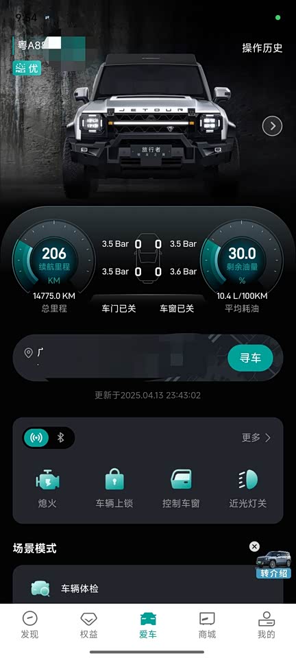 通过手机App可以远程启动车辆、提前开空调、查看胎压油量,甚至定位车辆位置。夏天提前降温、冬天预热座椅这些操作很实用。