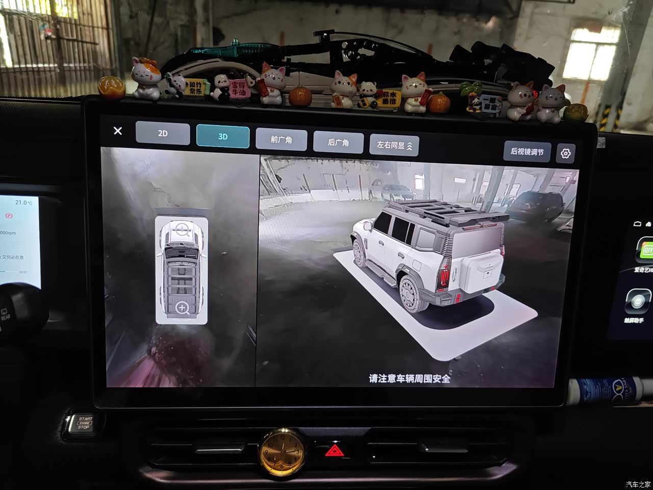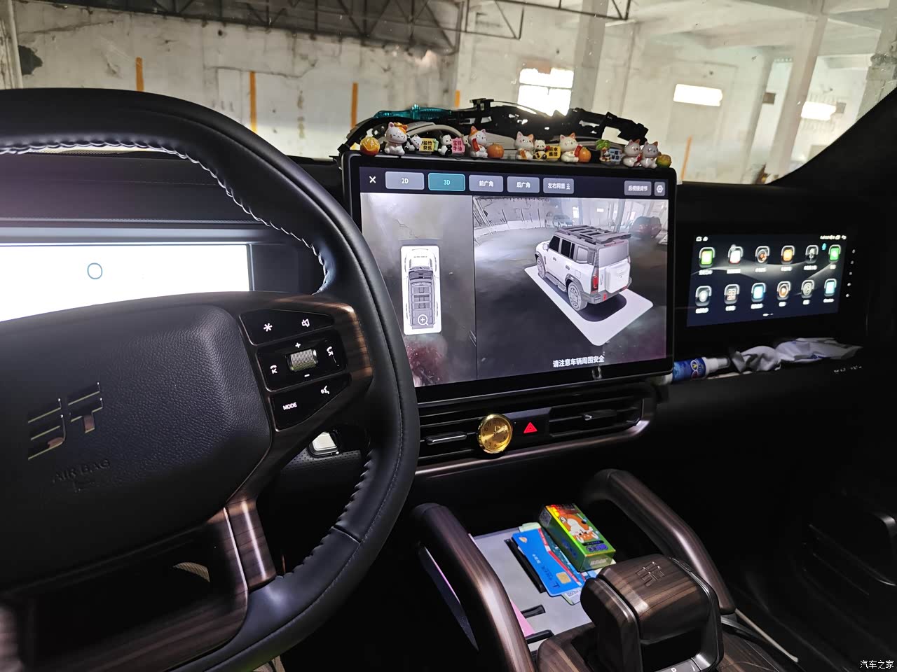车身四周的摄像头拼接画面清晰,畸变控制不错。窄路会车或倒车时自动触发,还带透明底盘功能,对新手友好。