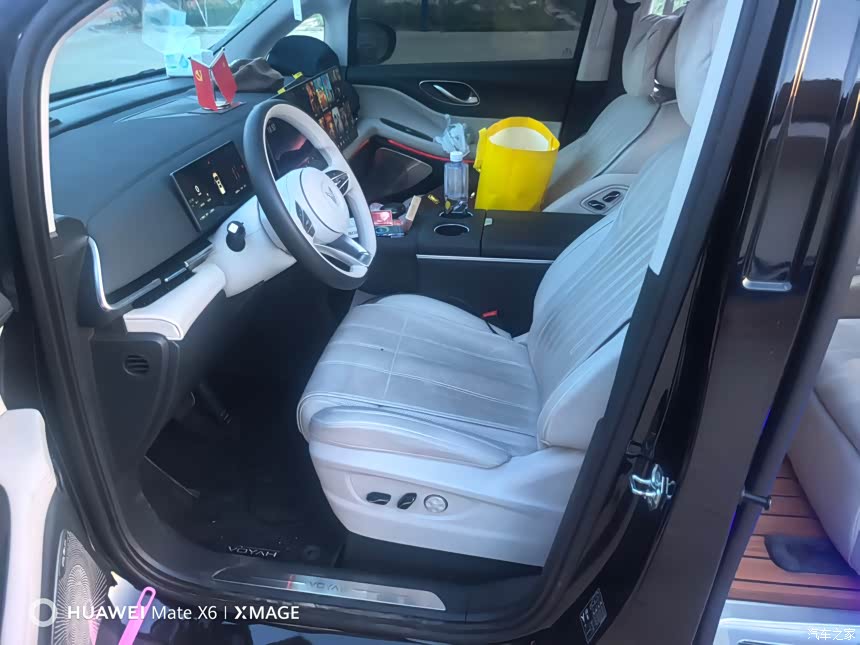 我觉得玄英黑的外观加上云灰色的内饰,就是绝配,看着车特别的上档次,有一种神秘而深藏不露的感觉,但怎么说呢,就这个座椅啊,太容易脏了,颜色太浅了,如果家里再有个熊孩子的话,这座椅简直没法看了,那必须得加一个座椅套什么的。用料还是环保级的,挺好的,提车的时候也没有什么异味。两块15.4英寸的双连屏看电视就是爽,还有那个HUD的抬头显示啊,开车太方便了。