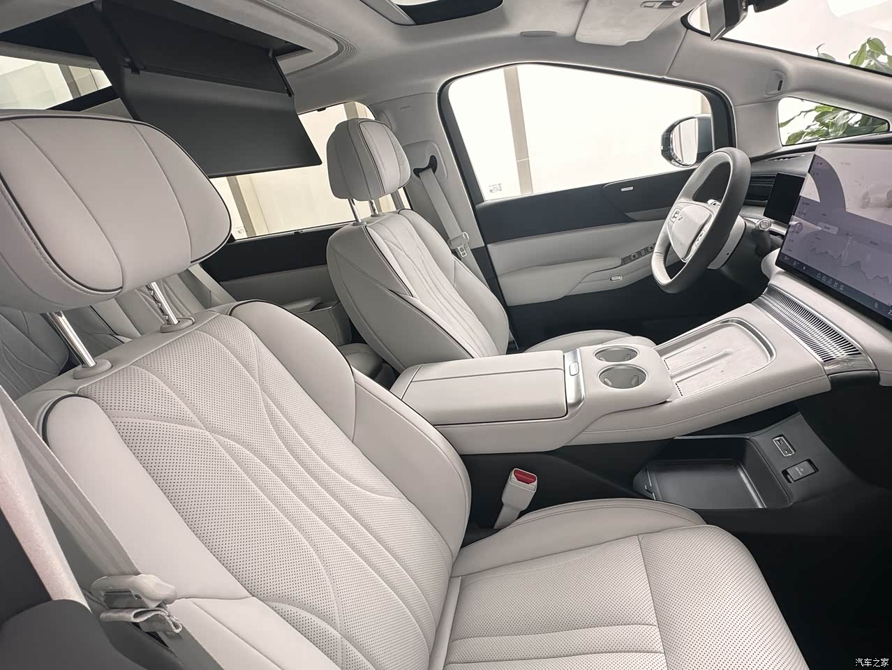 新款的x9舒适度比之前提升了很多地方,感觉目前没有体会到不满意的。奥,车顶的遮阳帘,车上一共有2个,前面的遮阳帘不像后排可以语音电动控制,只能手动开关,好奇前排的遮阳帘为啥不搞成电动的?