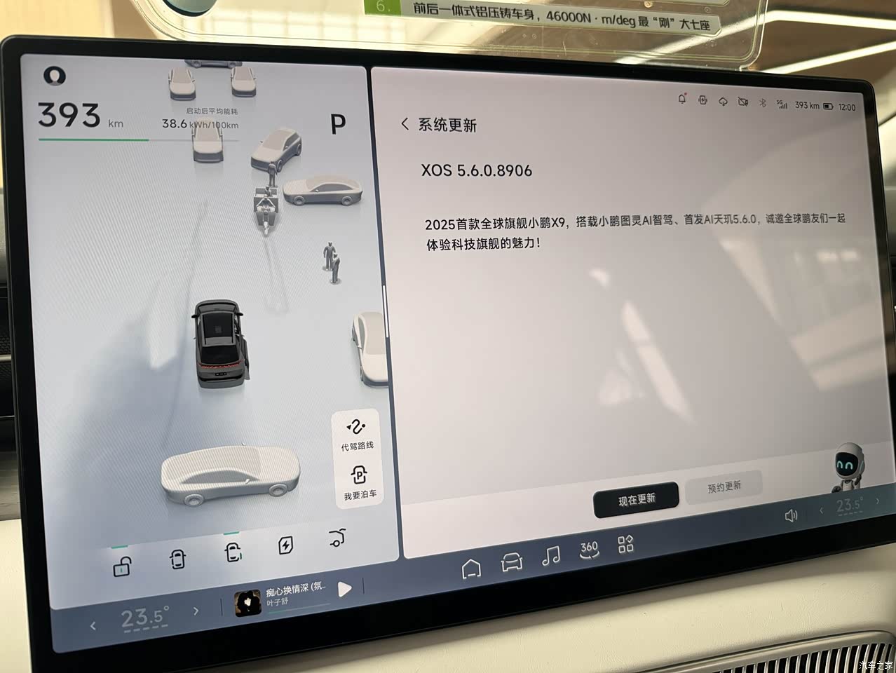 目前,新款小鹏X9用的系统是XOS 5.6.0.8906,最最新的系统,我的小鹏G9目前才是XOS5.5.5.8903,都要比它低一个等级,智能化在我看来,小鹏智驾一直是处于第一梯队的,目前5.6除和之前一样能城市智驾,还多了划线停车功能(我的G9后面也能升级) 除了智驾外,小鹏的智能语音也不错,开空调,开窗户,看电视,听歌,导航,甚至打开零重力座椅,你动动嘴,他都能帮你实现。