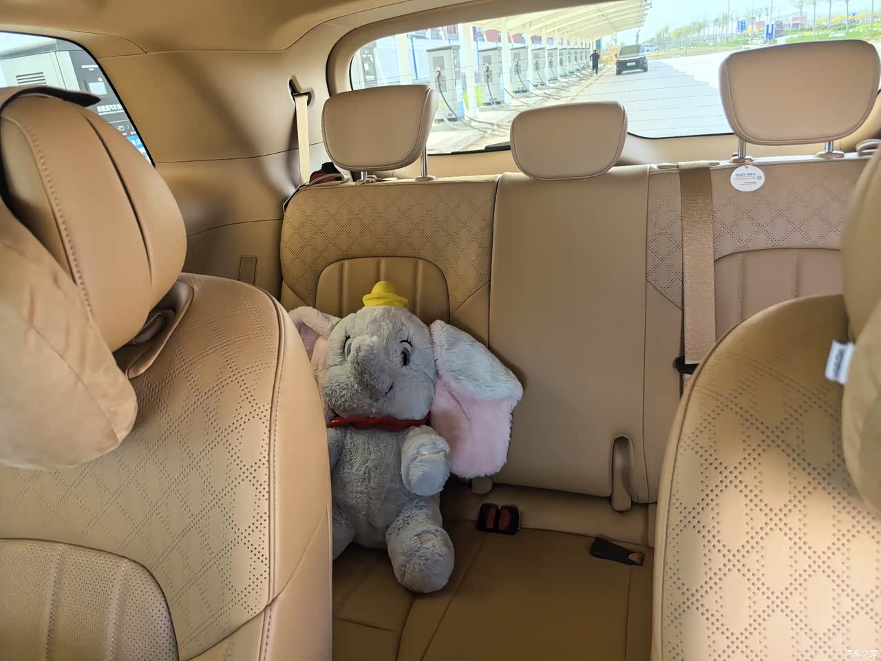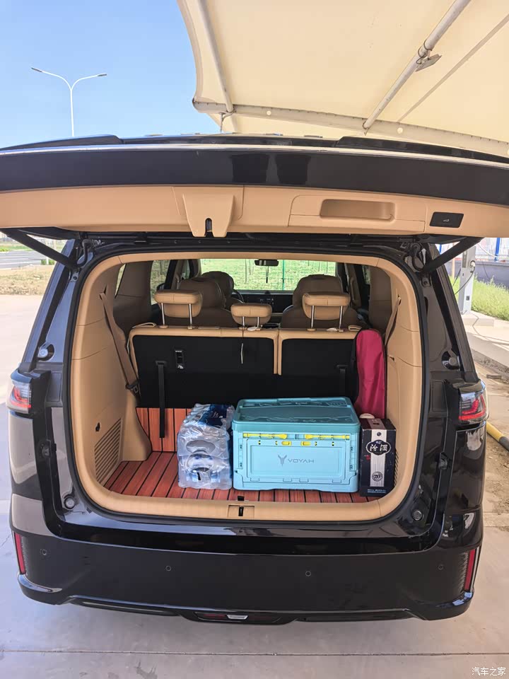 这车真是为全家出行设计的!第二排两个老板椅最舒服,腿托一抬、靠背一躺,跑长途睡觉都不累。第三排坐成年人也不会顶膝盖(比GL8稍微窄一丢丢),但如果是1米8的大高个可能有点憋屈。后备箱如果坐满7个人,大概能塞两个大行李箱加几个背包,要是全家露营带帐篷烧烤架的话,可能得放倒第三排才够用。车里小储物格挺多,手机、水杯、零食都有地方塞,宝妈放奶瓶湿巾也方便。