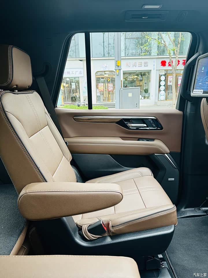 咋说呢---是在是太大了。坐在驾驶位就像是在开游艇,视野太好了。太浩的驾驶坐姿是所有SUV里最高的,也就是说,开太浩行驶在路上,所有你要的风景一览无余。 二排空间也是亮点,两个独立座椅很宽大,中间纯平而且很宽,就算是一个180斤的大胖子穿过也毫不费力。二牌座椅还有一个亮点,有一键自动按钮,方便收放。 太浩的第三排座椅真的体验很好,我身高158,正常入座膝盖跟前座椅还能有小半圈空间,空间完全够用。即使三排座椅立起状态下,后备箱空间也是很大的,3个26寸行李箱,完全没有问题。三排座椅要是放倒,那…………简直就是给了你一个移动的家呀!