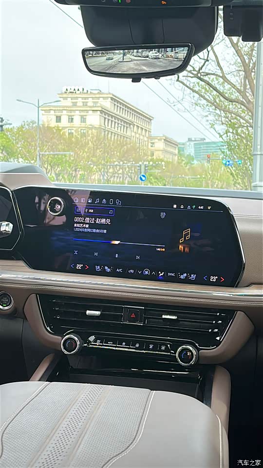 内饰是典型的美式SUV内部装饰,不奢华但让乘坐者觉得非常雅致、高端。没有花里胡哨的配置,中控台和门板都是软皮材质,触摸感觉非常好。