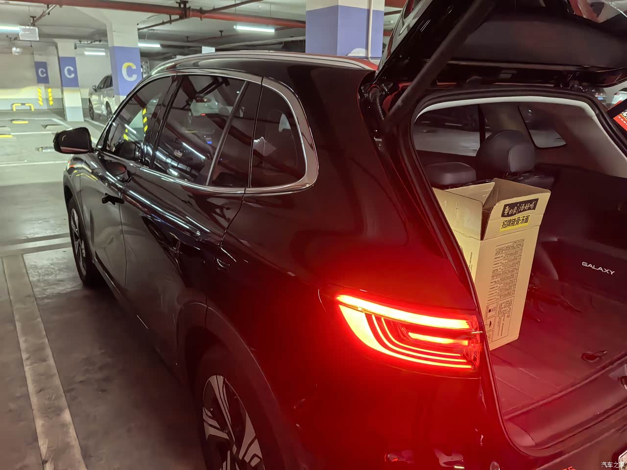 说到我的银河e5星舰版,最满意的就是续航和空间的感受。 - 高速续航:以110km/h的速度行驶,节能模式下能量回收设为高,空调温度23℃、风量两档,电量从98%消耗到10%,高速纯电达成率为90%。纯高速能跑456km左右。 - 城市续航:节能模式调到最低,制动调到舒适,城市纯电达成率高达100%。基本上能做到1比1,非常扎实的续航。 - 充电效率:配备高效快充技术,从30%充至80%电量仅需20分钟,能利用时间充电,不影响日常出行。 空间表现 - 乘坐空间:车内空间利用率高,媲美B级车宽敞感。全景天窗让车内明亮开阔,空间感更强。而且后排中央地台纯平,后排横向空间有保障,纵向空间方面,身高1.75米的乘客在后排,前排座椅调至最后仍有1拳半左右腿部空间。 - 储物空间:车内储物空间丰富,后排有手机储物格,后备箱461L规整实用,座椅放倒后可搬运大件。此外,车门、扶手箱、手套箱等多处都有储物格,后排空调出风口和座椅下方有小抽屉,后备箱地台下方还有掏空处理的下沉式储物空间。后座椅下方还有抽屉式储物盒。中控扶手下方也有抽屉式储物盒。