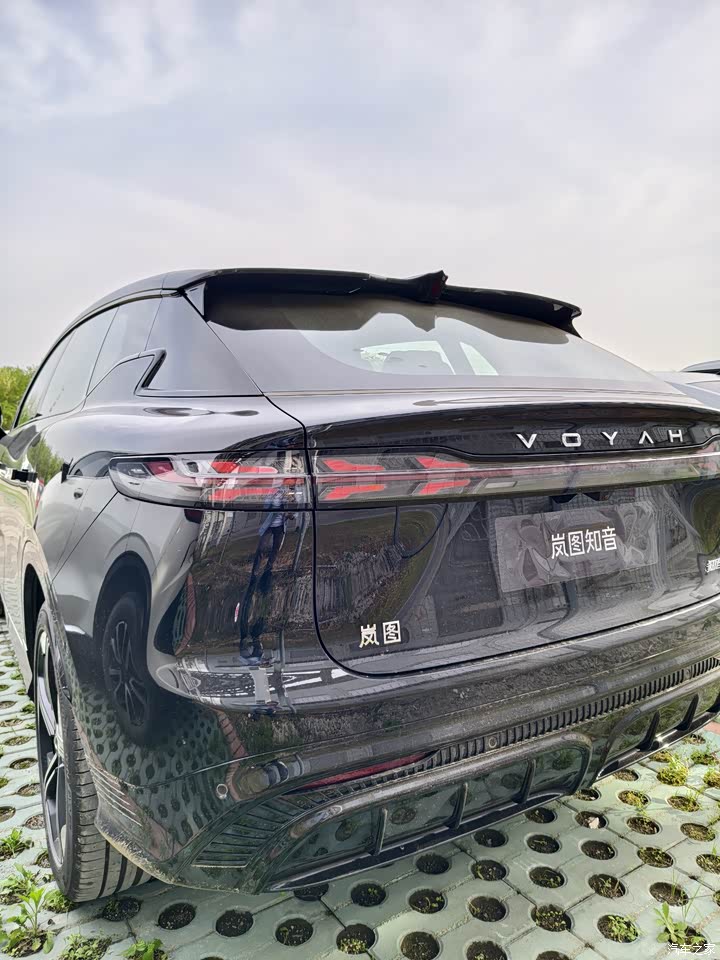 岚图知音的外观设计绝对是颜值担当。我选的极夜黑得车身+黑化车顶,搭配溜背造型和无框车门,运动感拉满。前脸的鲲鹏展翅大灯和贯穿式尾灯,晚上点亮后特别酷炫,像是科幻电影里的未来座驾。细节也很到位:20英寸的刀锋轮毂不仅好看,还能降低风阻。御风式尾翼既能增加稳定性,又让车尾线条更流畅。唯一的小遗憾是车漆有点薄,停车时得小心别被旁边的车门蹭到。