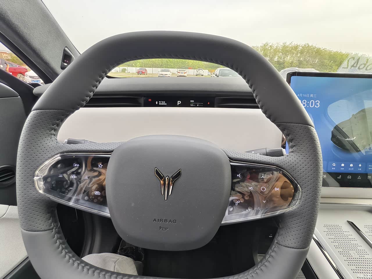 内饰颜色我选的辰星,坐进车里,第一感觉就是高级。仿麂皮座椅触感细腻,前排通风/加热/按摩功能一应俱全,长途驾驶也不会累。中控台的15.4英寸OLED曲面屏支持左右滑动,副驾看电影时能把屏幕滑过去,超有仪式感。HUD抬头显示特别实用,导航信息、车速、电量都能直接投射在前挡风玻璃上,不用低头看仪表盘。不过仿麂皮座椅容易沾灰,得定期用专用清洁剂打理,不然油渍渗进去就很难清理了。