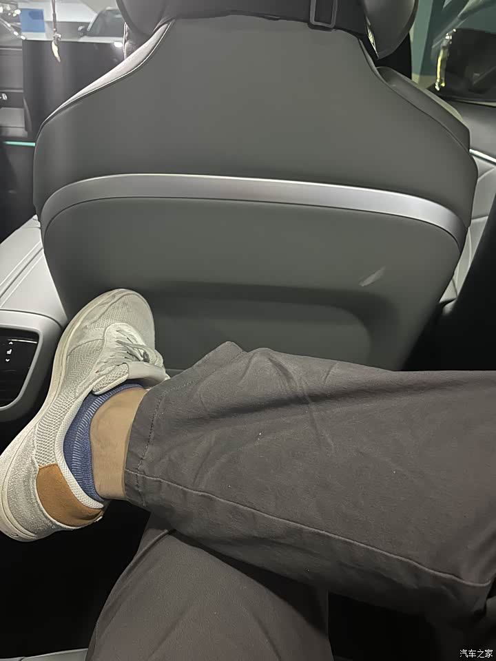 轴距达到两米九,又是后驱车,即使前排驾驶员一米八,后排空间也非常充足。坐累了就翘个二郎腿!