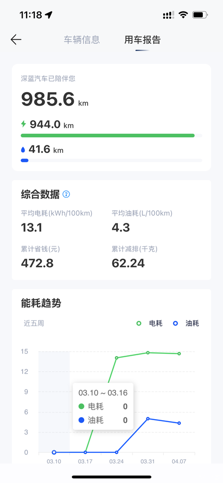 目前平均电耗13.1,非常满意!用油发电跑过将近50km,平均油耗4.3,也出乎意料。夏季开空调后再来补充。毕竟是增程,即使续航打折多也不怕,有油箱心里就有底!不怕抛锚在路上!