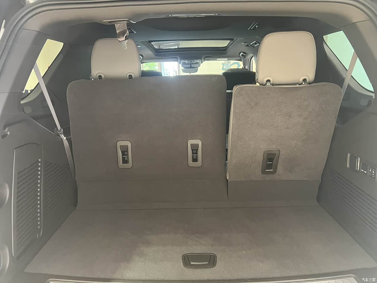 这辆车的内饰让我看来,还是很美式的那种豪华,满中控的按钮,给你一种不会因为电子屏幕失控车就无法控制的安全感。 在内饰材质、工艺等体现豪华的常规方面,太浩也拿捏得很稳。皮质的柔软细腻和实木装饰条的温润顺滑组合出人们最熟悉的豪华质感。再加上镀铬包边装饰与黑色内饰的撞色搭配,共同组成了太浩充满工业色彩,同时又充满高档格调的豪华氛围。 这辆TAHOE太浩,最有意思的也属这里了。他的后备箱玻璃竟然是可以打开的那种。这个小窗户简直不要太好玩了。看到这你是不是仿佛看见了FBI拿着步枪,从这伸出与悍匪对战的场景。