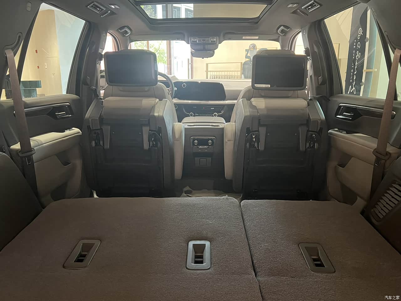 舒享空间 进入车内,2025款TAHOE太浩以驾驶员为中心的横向环抱IP设计带来更为开阔通透的座舱空间。精致的软质包覆材料配合精湛的切割缝合工艺,带来无处不在的质感体验。大三排真七座的2+2+3剧院式座椅布局,营造出宽敞阔绰的内部空间,于广阔天地间,畅享超越期待的舒适奢享体验。 宽敞的二排通道与可一键电动折叠的二排座椅,为第三排乘客进出提供便利。