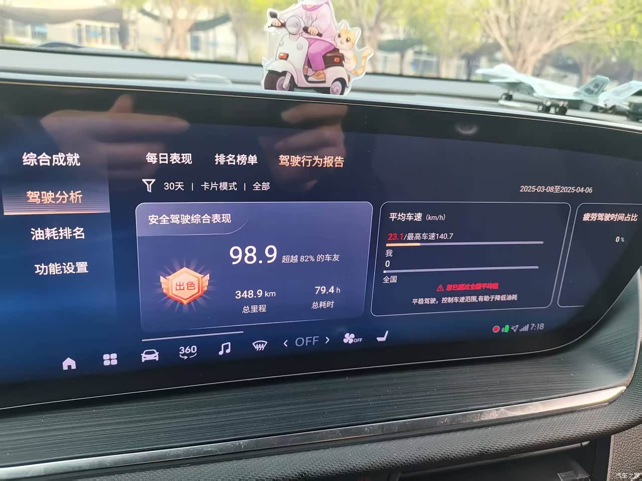 刚提车时油耗30多个,目前已经被我拉到10以下了,在市区普通道路基本上在9到10个油,跑高架的话大概6、7个油,目前仅跑过一次高速,最低不到6个油,目前还没到1000公里,争取到首保时,把平均油耗拉到9个油以下。