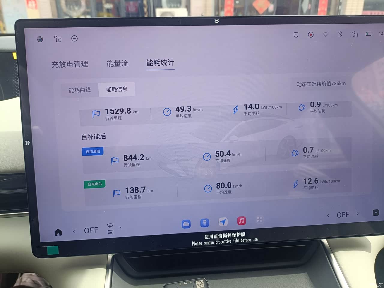 车主真实评价:省心实用,但有小遗憾 提车10天,共跑了1000公里,最满意的是续航和油耗。日常通勤纯电够用,纯电续航WLTC205km,实际能跑190-200km左右),燃油优先模式油耗5-6/100km,确实省。内饰质感不错,车机反应快,语音控制导航、空调很方便,但偶尔会误唤醒。空间够大,全家出行不挤,后备箱能装。 缺点也有:底盘偏软,过弯侧倾明显;增程器启动时声音虽小,但急加速能感觉到震动;快充速度一般,30%-80%要40分钟。另外,4S店服务态度好,但部分配件等待周期长。就是我这个低配中间没有音响都是假的。然后官方写的LCW变道碰撞预警实车没有这个功能。多出了前雷达 总结:适合家用,续航扎实、配置高 但细节优化和售后效率有待提升。如果预算20万内,值得考虑。 从上个月29号购买总共行驶1529.8公里,充电182.28元,加了300元41L燃油还剩余49%,总油箱67L出场应该有个5L,