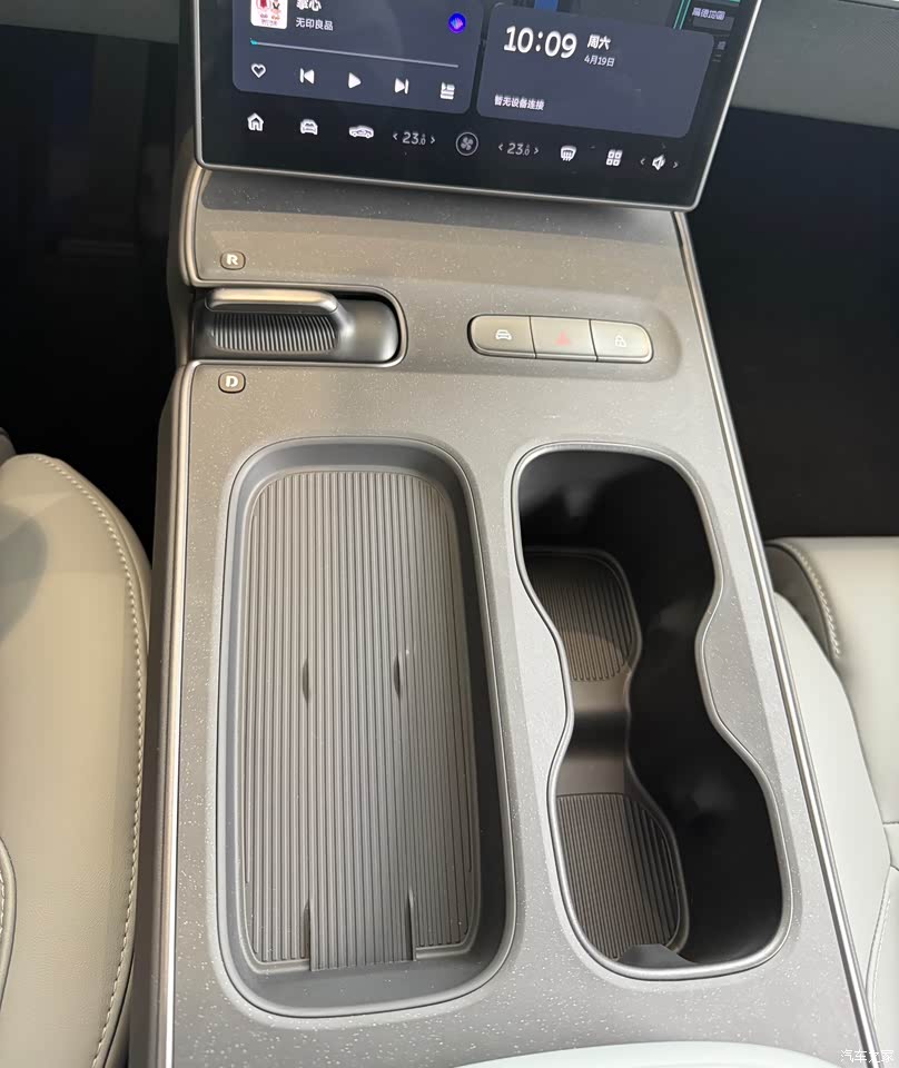 前排中间是平的,没有档位升起来,下面的话有一个镂空设计储物空间,可以放包包👜