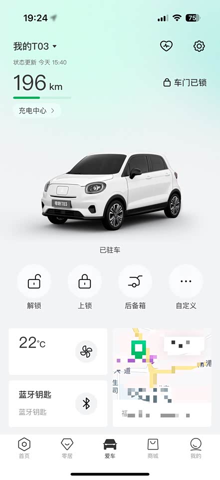 有app远程控制,可以远程解锁和打开空调,也可以看位置