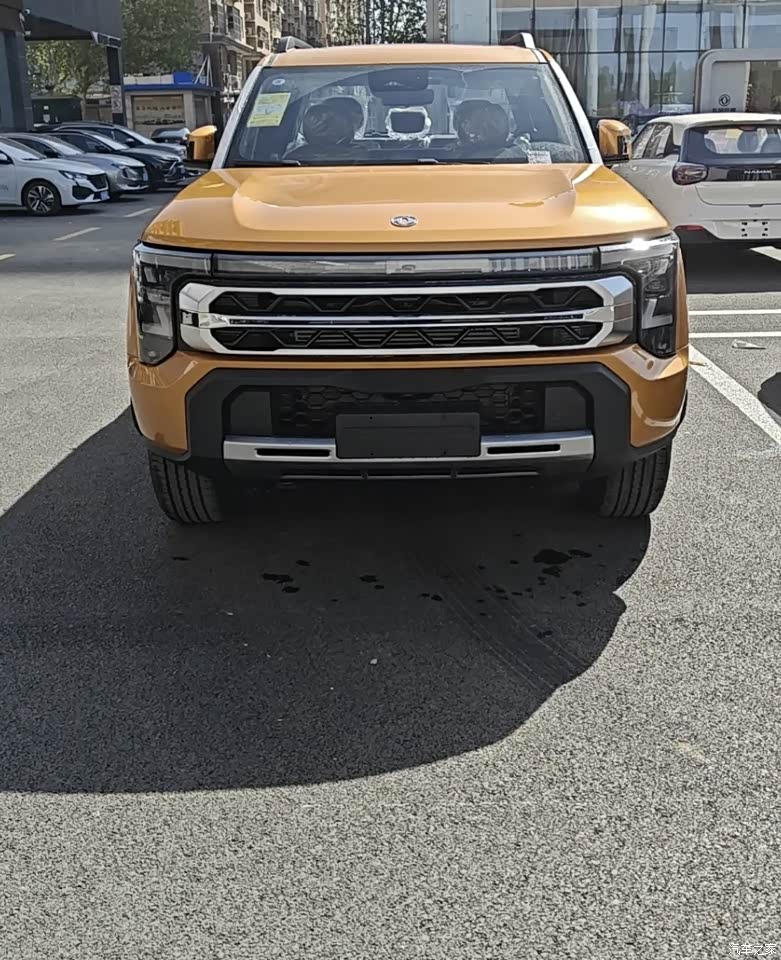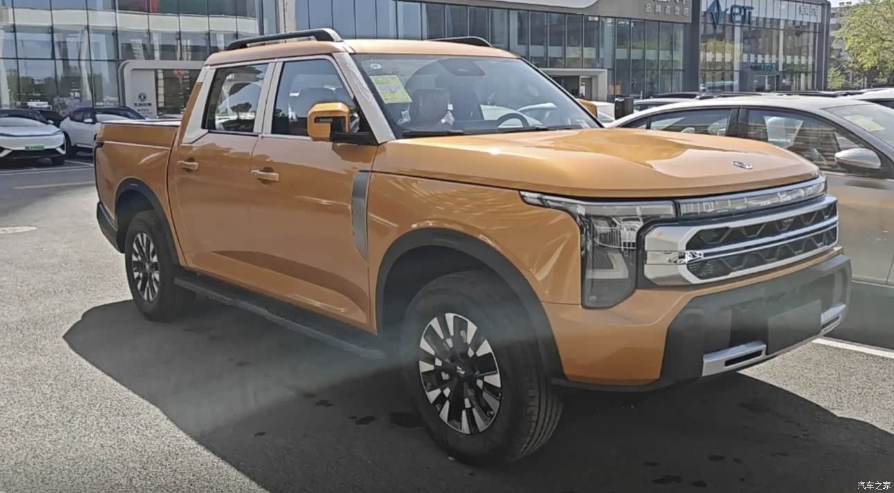 外观造型硬朗大气,充满了硬派皮卡的风格。前脸设计独特,大灯组犀利有神,显得很是帅气。