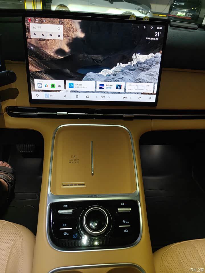 内饰选择了棕色商用风,比较耐脏一些。中控车机大屏展示内容丰富,导航信息也很清晰。中控台采用了最为熟悉的按钮设计,对于开惯了传统车的司机还是很友好的,无线充电给手机爱好者提供了极大便利。